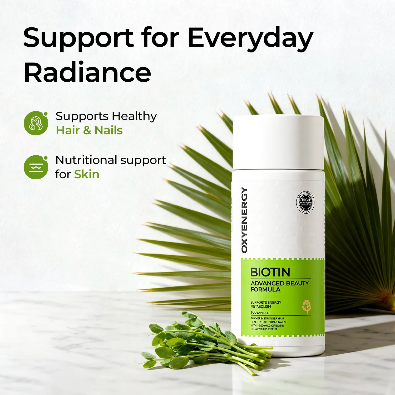 • Hỗ trợ tóc và móng khỏe mạnh - Biotin đóng vai trò hỗ trợ duy trì sức khỏe và vẻ đẹp của tóc và móng, đặc biệt là khi sử dụng trong thói quen chăm sóc sức khỏe hàng ngày của bạn.