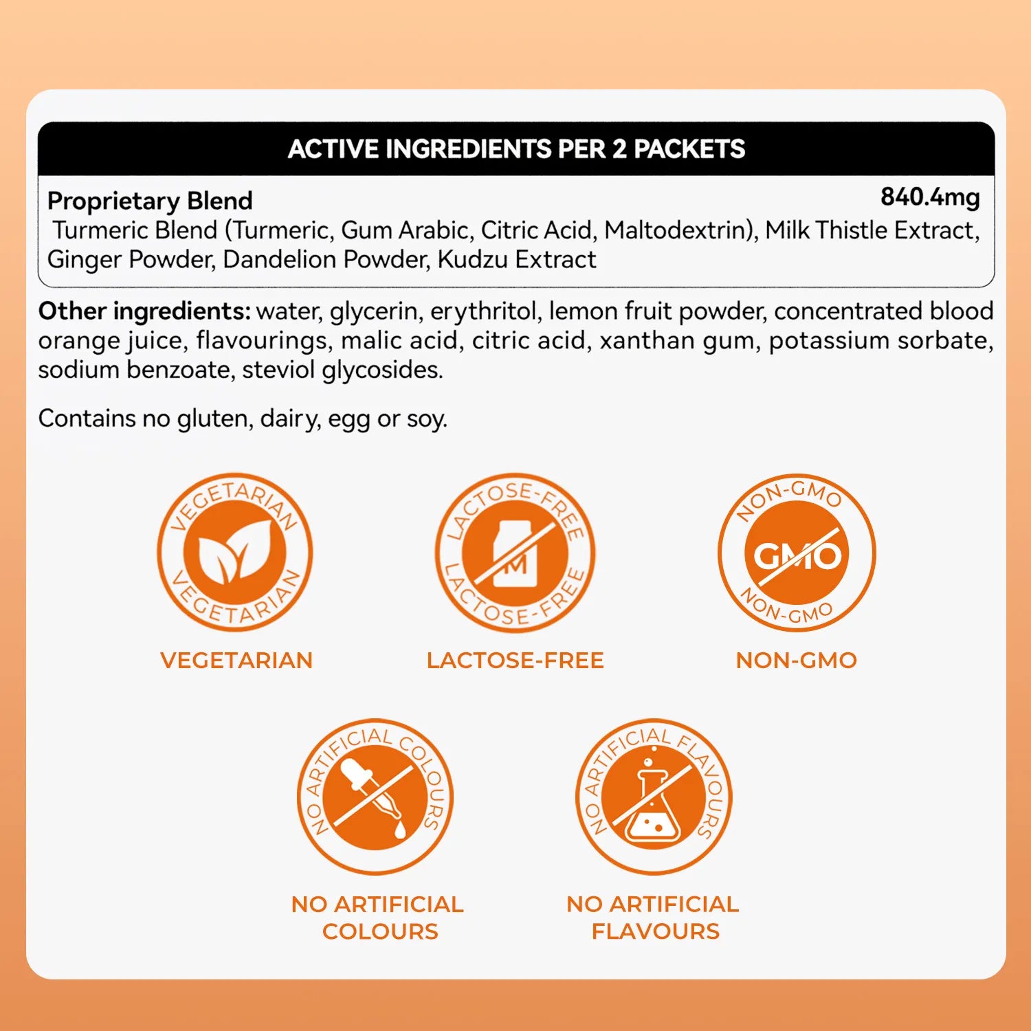 Turmeric Blend (Turmeric, Gum Arabic, Citric Acid, Maltodextrin), Milk Thistle Extract,