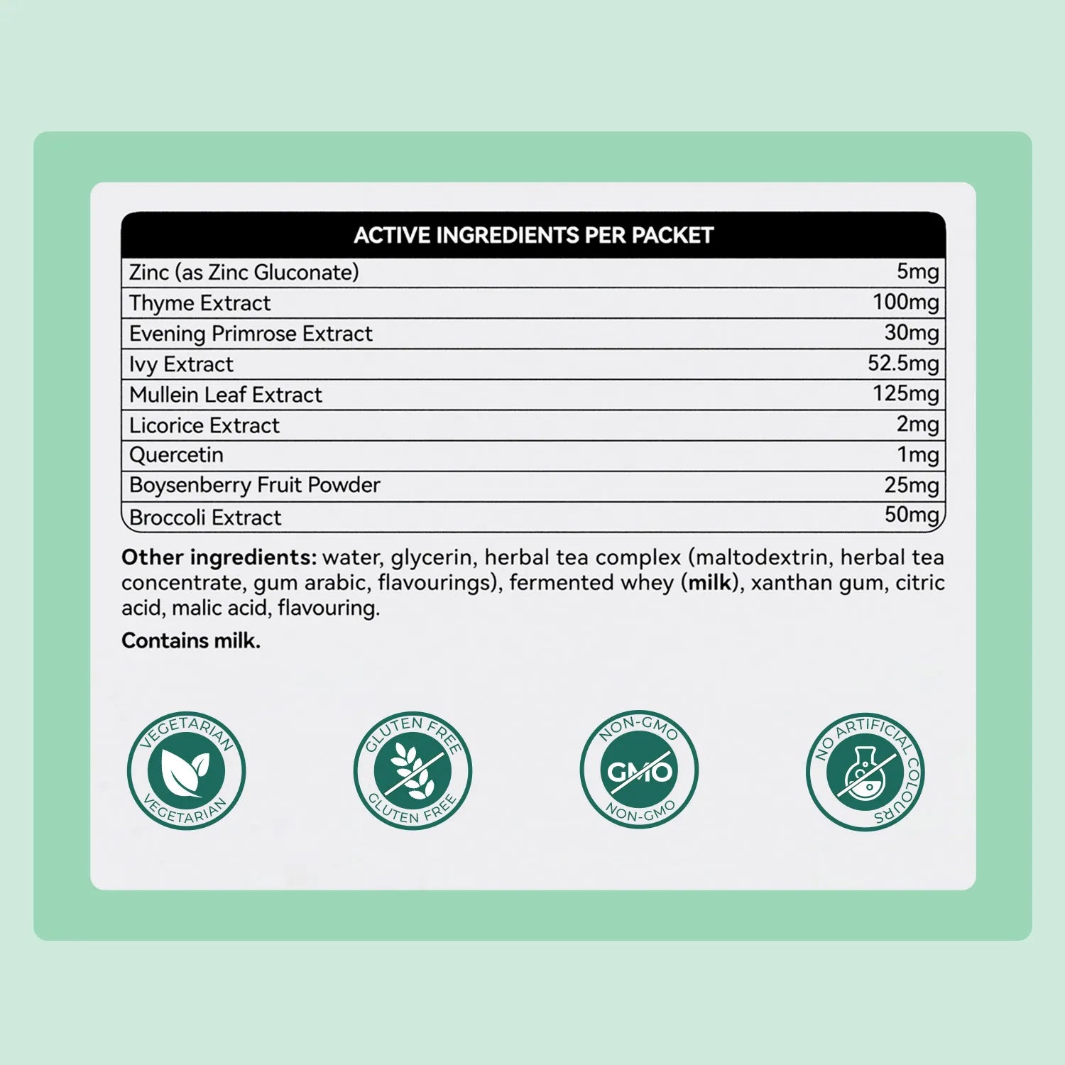 Other ingredients: water, glycerin, herbal tea complex (maItodextrin, herbal tea