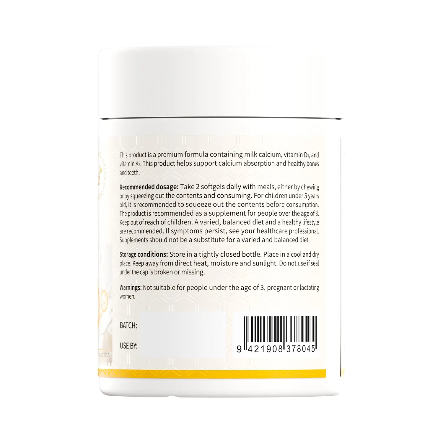 Scientific Formula: Combined with Vitamin D3 and VK2, it promotes calcium absorption and bone health, potentially increasing bone density by 44.4%.