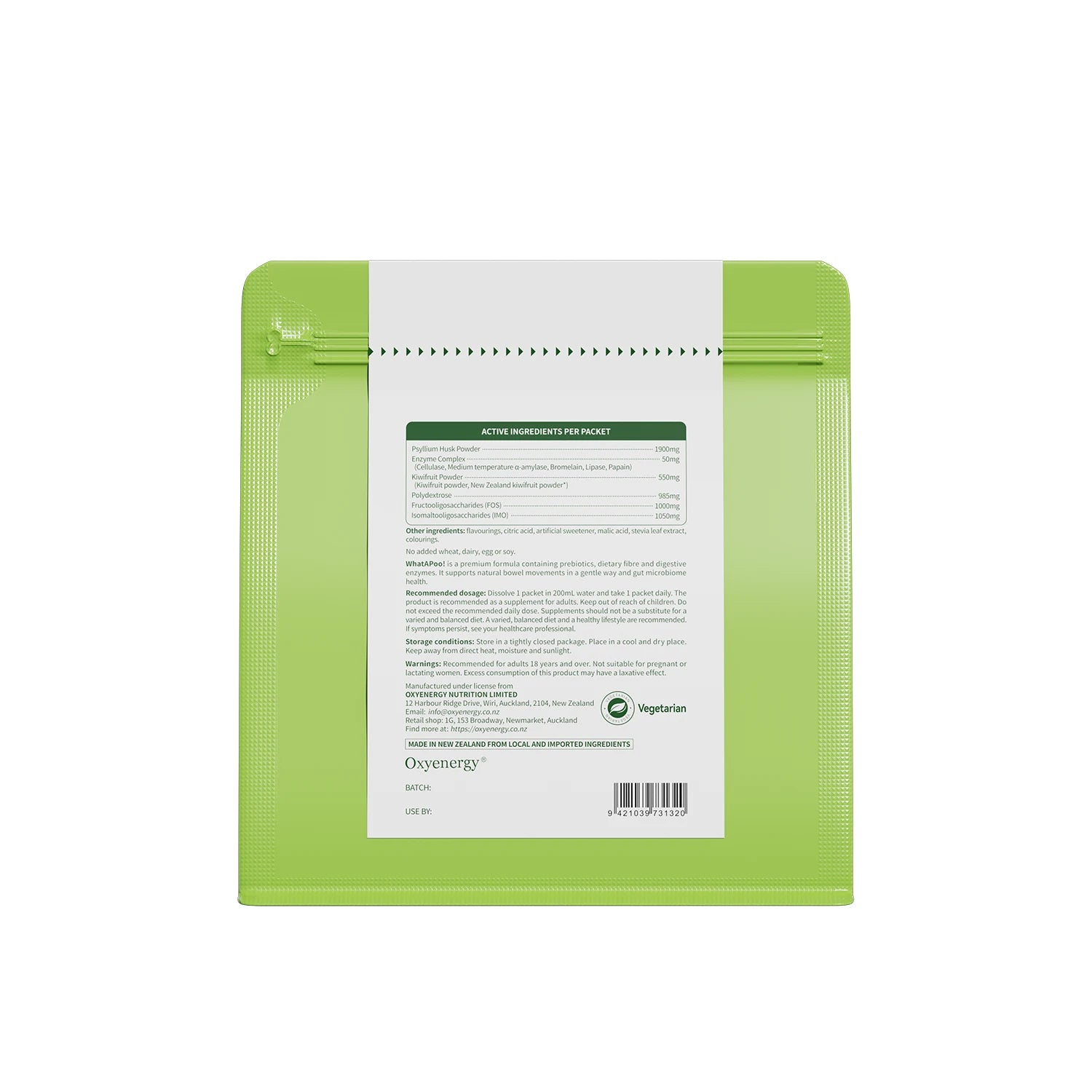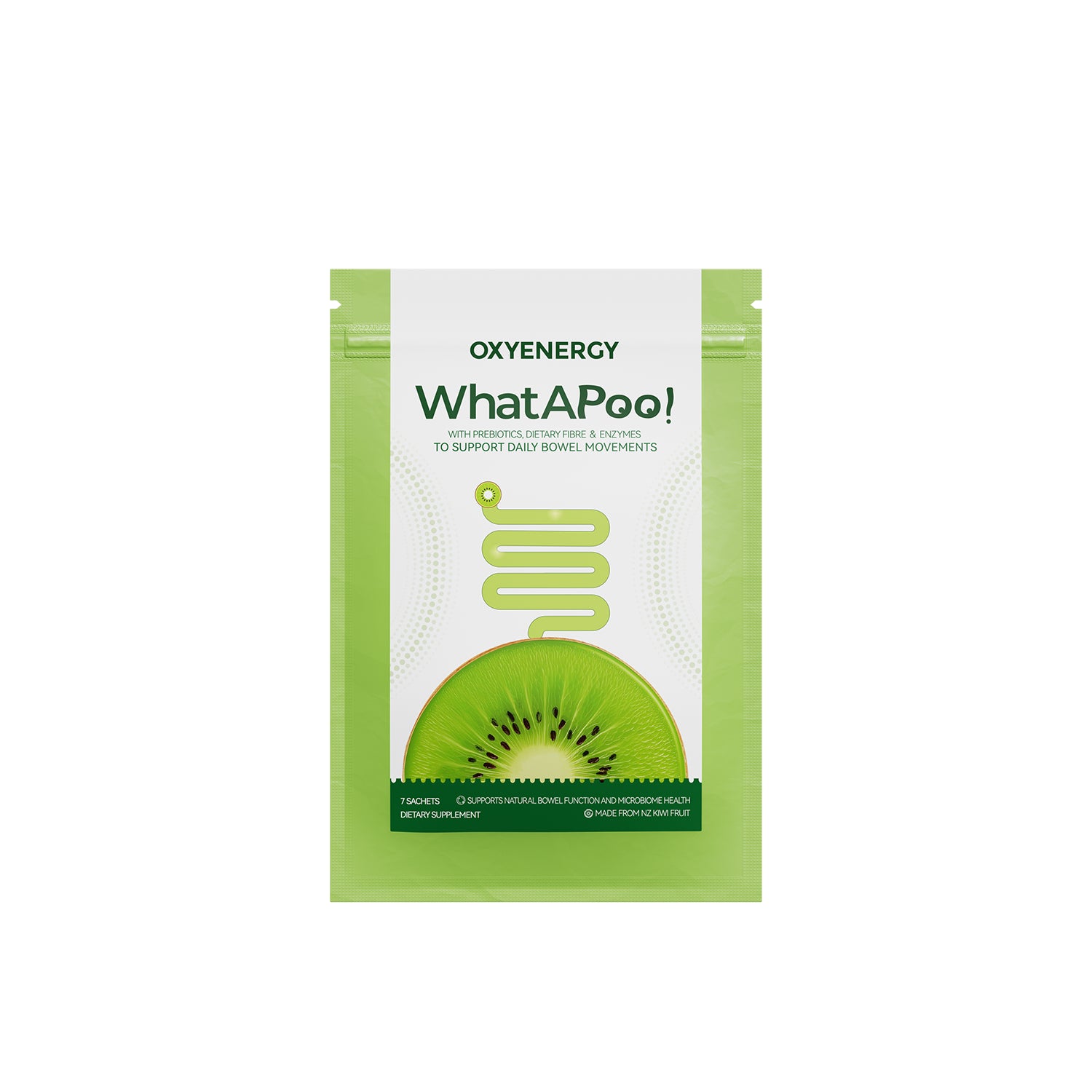 WhatAPoo! combines prebiotics, dietary fibre, and digestive enzymes — naturally supporting regular bowel movements and a healthy gut microbiome.